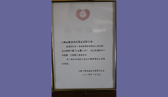 2014年,上海紅箭自動(dòng)化設(shè)備有限公司為上海市慈善基金會捐款